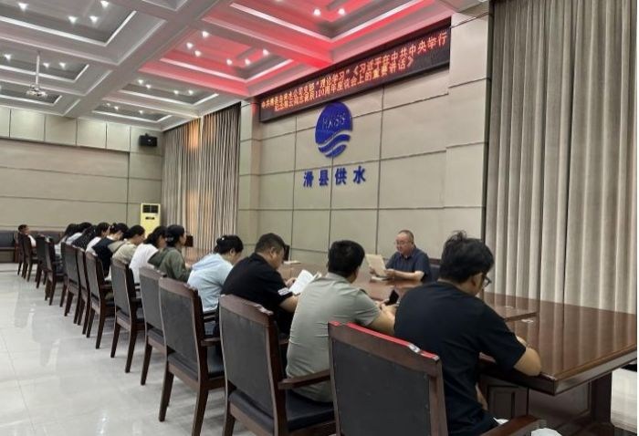 8月8日上午,中共滑县自来水公司支部在公司大会议室召开会议,组织开展“理论学习”《中共中央举行纪念陈云同志诞辰120周年座谈会 习近平发表重要讲话》,支部组织委员、经理助理耿育林同志主持学习,公司党员、中层副职以上及行政科室全体参加了会议。