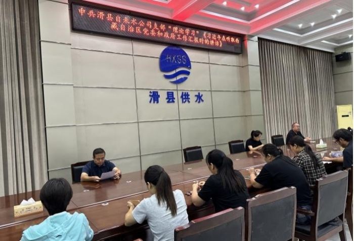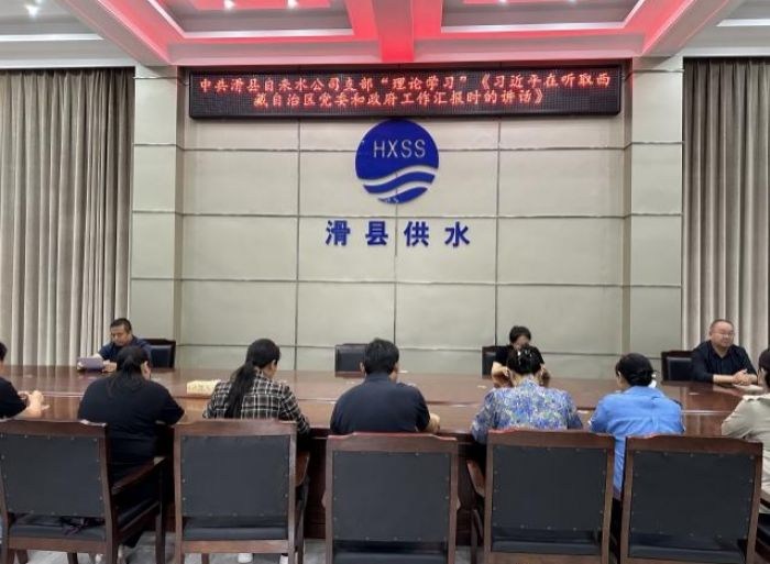 9月5日上午,中共滑县自来水公司支部在公司大会议室召开会议,组织开展“理论学习”《习近平在听取西藏自治区党委和政府工作汇报时强调 全面贯彻新时代党的治藏方略 努力建设团结富裕文明和谐美丽的社会主义现代化新西藏》,支部宣传委员、三水厂厂长卢飞同志主持学习,公司党员、中层副职以上及行政科室全体参加了会议。