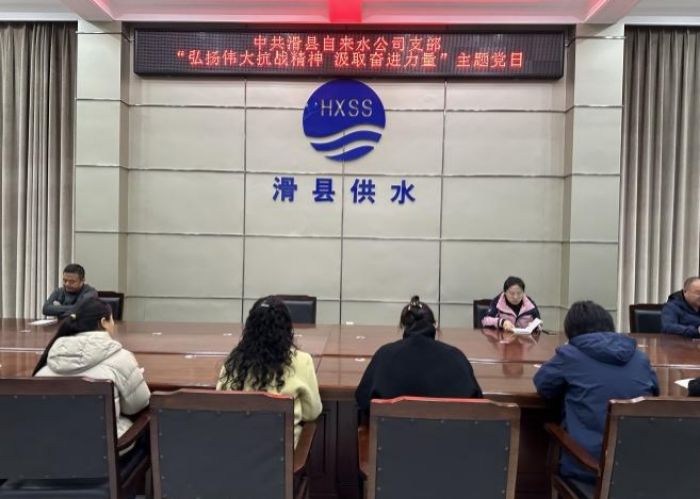 10月27日上午,中共滑县自来水公司支部在公司大会议室召开会议,组织开展“弘扬伟大抗战精神 汲取奋进力量”主题党日 ,支部组织委员、经理助理耿育林同志主持学习,公司党员、中层副职以上及行政科室全体参加了会议。