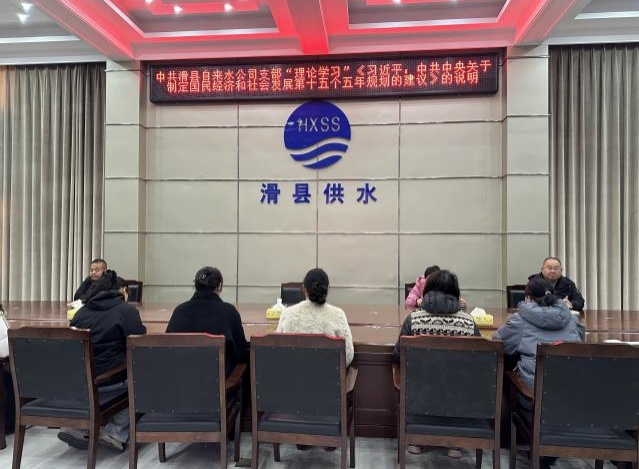 12月5日上午,中共滑县自来水公司支部在公司大会议室召开会议,组织开展“理论学习”【习近平:关于《中共中央关于制定国民经济和社会发展第十五个五年规划的建议》的说明】,支部组织委员、经理助理耿育林同志主持学习,公司党员、中层副职以上及行政科室全体参加了会议。
