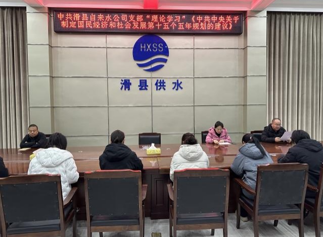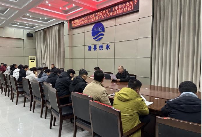 12月19日上午,中共滑县自来水公司支部在公司大会议室召开会议,组织开展“理论学习”《中共中央关于制定国民经济和社会发展第十五个五年规划的建议》,支部组织委员、经理助理耿育林同志主持学习,公司党员、中层副职以上及行政科室全体参加了会议。