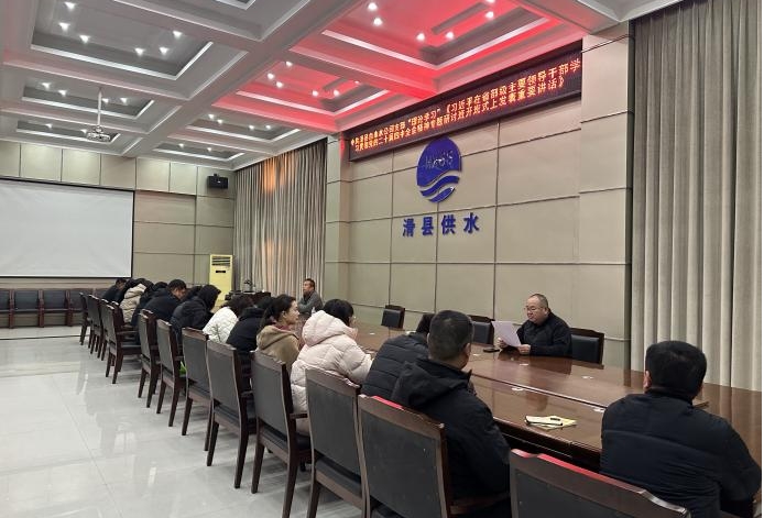 2月13日上午,中共滑县自来水公司支部在公司大会议室召开会议,组织开展“理论学习”《习近平在省部级主要领导干部学习贯彻党的二十届四中全会精神专题研讨班开班式上发表重要讲话》,支部组织委员、经理助理耿育林同志主持学习,公司党员、中层副职以上及行政科室全体参加了会议。
